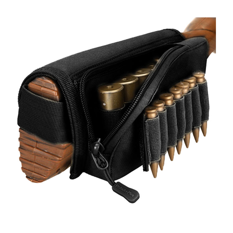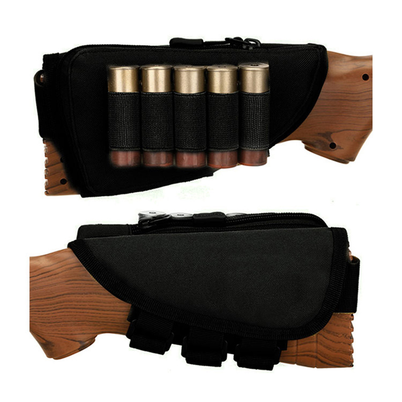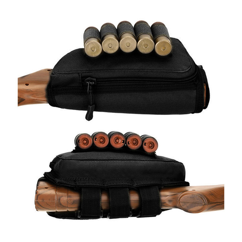 Підставка для щоки приклада Тримач боєприпасів Регульований тримач патронів Мисливський чохол для правшів, що швидко знімаються, для куль для рушниці (5 патронів) і однієї рушниці (7 патронів).2 чарівні наклейки, прикріплені еластичними стрічками для боєприпасів, тримач із 5 прорізами призначений для рушничних гільз усередині підсумка на блискавці, тримач із 7 прорізами призначений для куль ззовні. Поставляється з однією рушницею (5 патронів) і однією гвинтівкою (7 патронів) зі змінними патронами/гільзами.