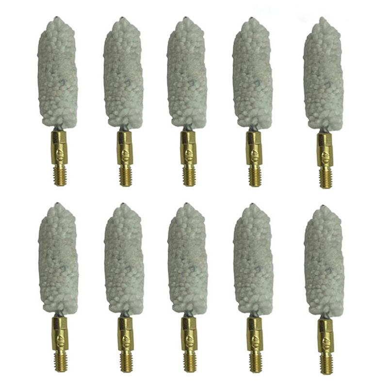 Швабри для чищення пістолета з бавовняних дротів для чищення отвору ● Міцні бавовняні дроти. Антикорозійний сталевий шток. ● Діаметр кожної щітки буде на 1-5 мм більший за відповідний внутрішній діаметр отвору, щоб можна було ретельно очистити отвір. ● Кожна щітка з нечітким номером калібру, надрукованим на щітці. ● Гайка натиснута на шток щітки щільно та міцно. ● Приймаються логотипи OEM і клієнта.