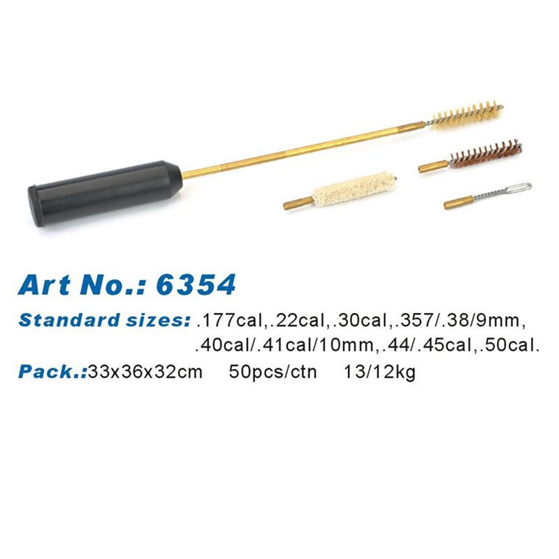 Набір для чищення пістолета з порожнистою рукояткою з латунною щіткою, бавовняною шваброю, нейлоновою щіткою, тримачем латунь з прорізами, 2 латунними стрижнями. Якщо всі компоненти не використовуються, їх можна помістити в порожнисту ручку. Таким чином, це дуже маленькі та зручні інструменти для чищення пістолетів / пістолетів.