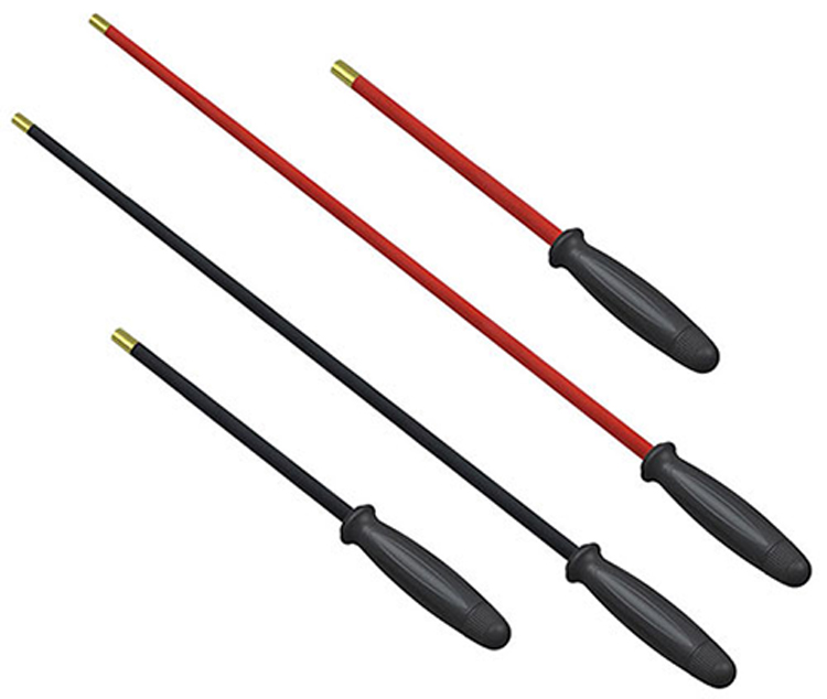 Цільний довгий стрижень для чищення пістолета з пластиковою рукояткою, що швидко обертається, має багатострижневий матеріал на ваш вибір. Наша стандартна робоча довжина для гвинтівок і дробовиків становить 38 дюймів і 9 дюймів для пістолетів. Довга прозора туба.